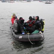 Divers arriving at start of search transect