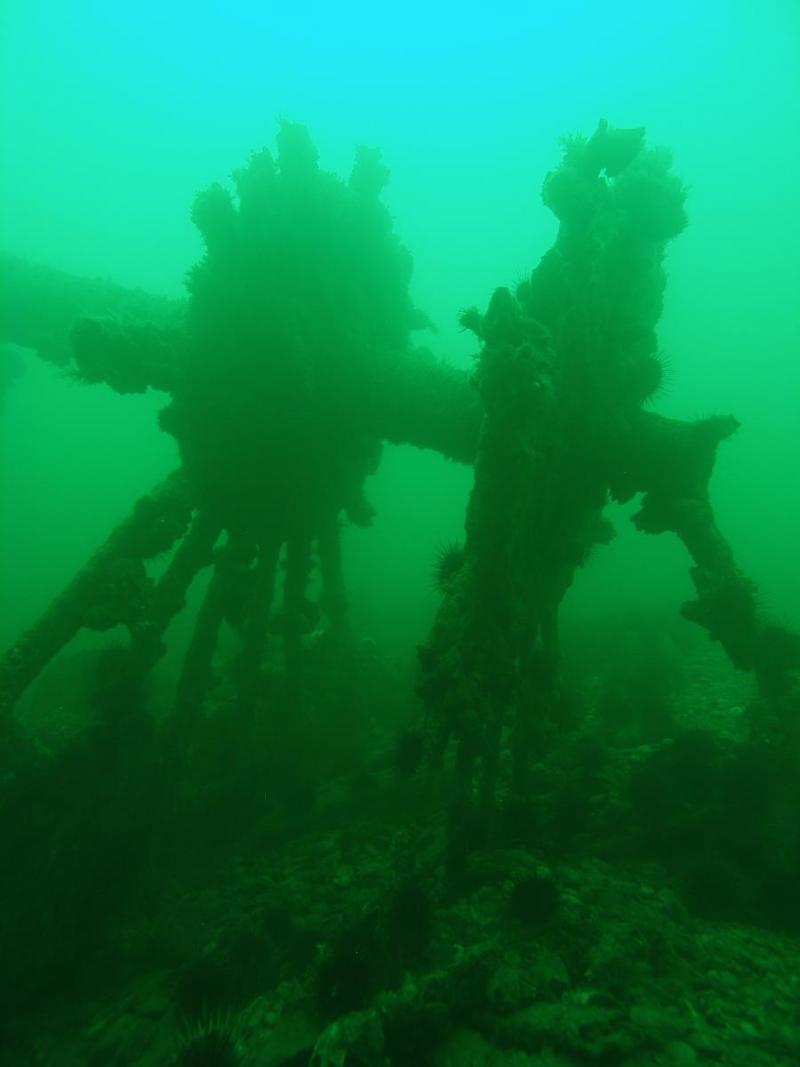 Port side axel and wheel hubs with spokes; photo by Jacques Marc