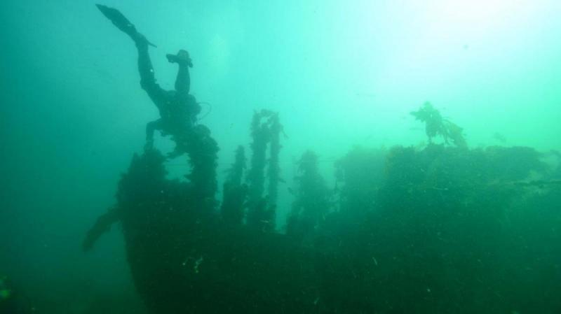 MV Queen - UASBC Diver inspecting remaining bow of wreck